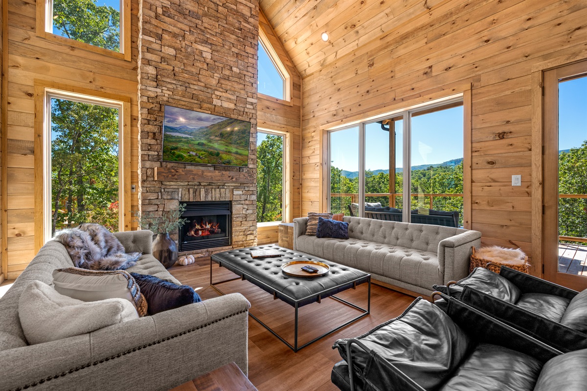 Nestled in the heart of the Smoky Mountains, Parks Lodge is a modern cabin with an upscale mountain feel. The cabin boasts a sleek but rustic design, with clean lines and natural wood finishes. The open floor plan allows for plenty of natural light to flood in, creating a warm and inviting atmosphere.